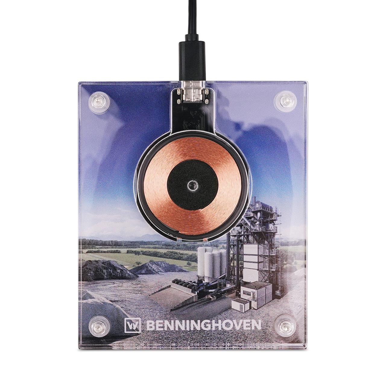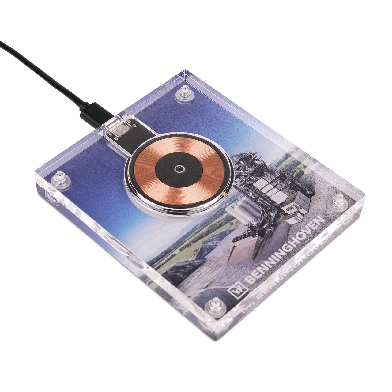 Der neue BENNINGHOVEN Wireless Charger ist ein hochwertiger Wireless Charger mit einem Gehäuse aus durchsichtigem Acryl. Der Charger bietet eine Ladefläche mit einer Ausgangsleistung von bis zu 15 Watt. So wird ein schnelles und komfortables Aufladen gewährleistet. Die sichtbare Kupferspule ist ein optisches Highlight, die dem Wireless Charger einen coolen Industrial-Retro-Look verleiht. Die vier Anti-Rutsch-Pads auf der Unterseite bieten einen sicheren Stand - auch auf glatten Oberflächen. Das Ladegerät ist über einen USB-C-Anschluss aufzuladen.