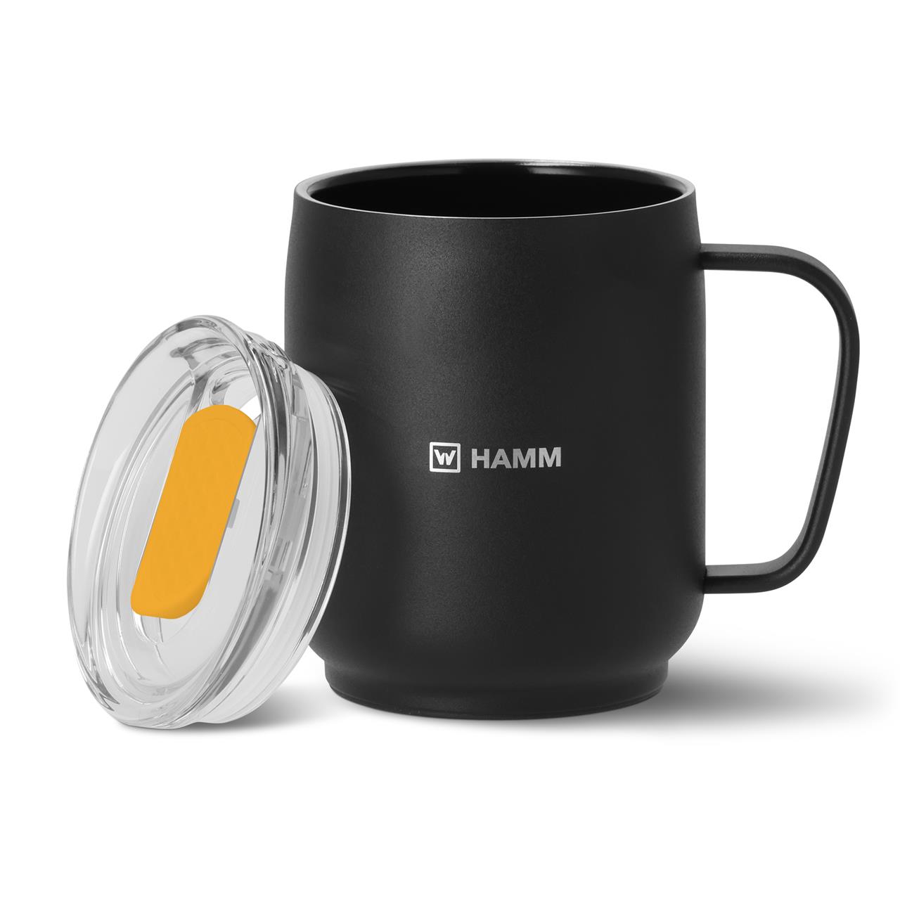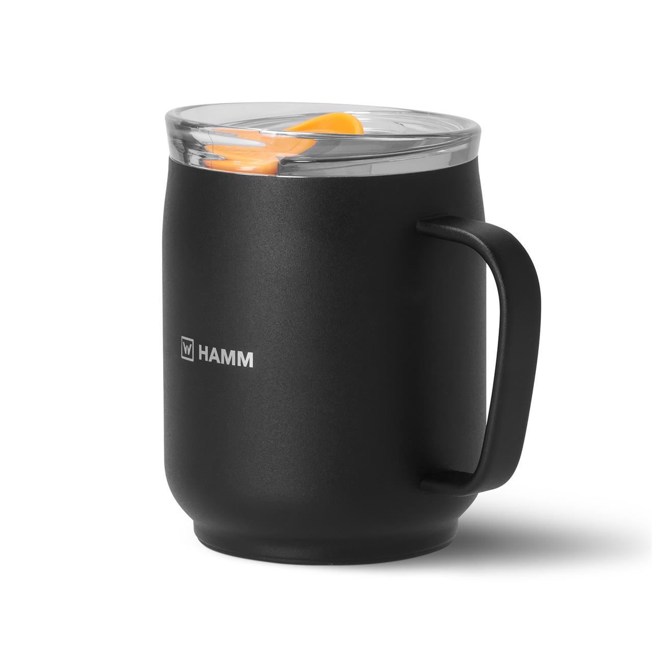 Die Keramik-Thermo-Tasse vereint die Vorteile einer Keramiktasse sowie eines Thermobechers. Zum einen bleibt Ihr Getränk warm und der Geschmack wird Dank der Keramikbeschichtung nicht getrübt. Der transparente Deckel sorgt zusätzlich dafür, dass Nichts verschütet wird. Die Tasse mit HAMM Gravur hat eine Füllmenge von 350 ml.
