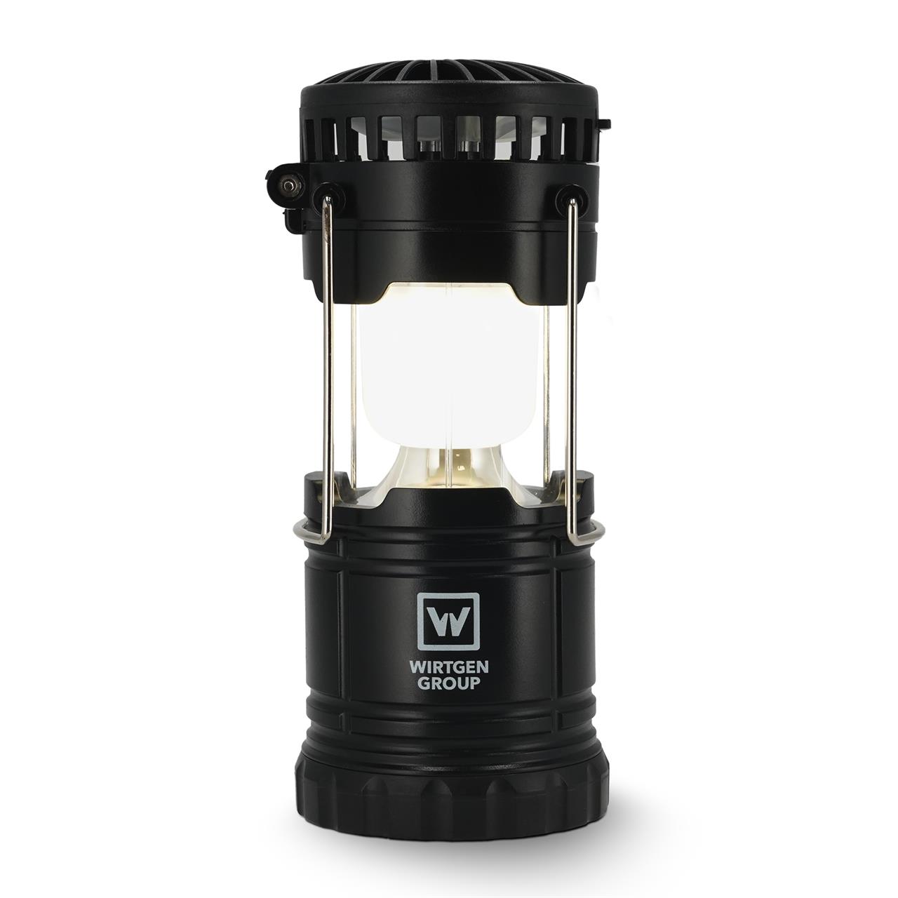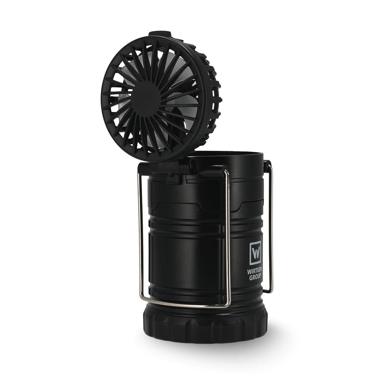 Outdoor-Lampe & Ventilator „WIRTGEN GROUP“ – ultrakompaktes HighTech-Lichtwunder für Arbeit, Camping oder unterwegs. Wiederaufladbar und umweltfreundlich, mit warmweißem, regulierbarem LED-Licht (80?Lumen, SMD x?6) und aufstellbarem 2-stufigen Ventilator für heiße Tage. Inkl. USB-C-Anschluss, 500?mAh Akku, praktischem Aufhängebügel und 1c-Werbedruck.