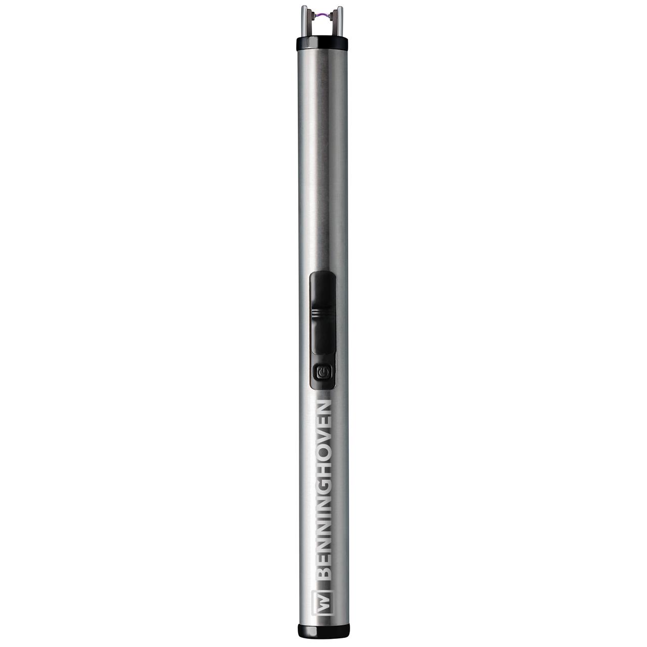 Practical! A lighter that works not with incandescent coil, but the arc technology and completely without fuel. It is powered by a rechargeable battery. It has an on/off switch, but goes off automatically after about 10 seconds. The battery lasts for about 70 ignitions. The lighter is adorned with a BENNINGHOVEN engraving.