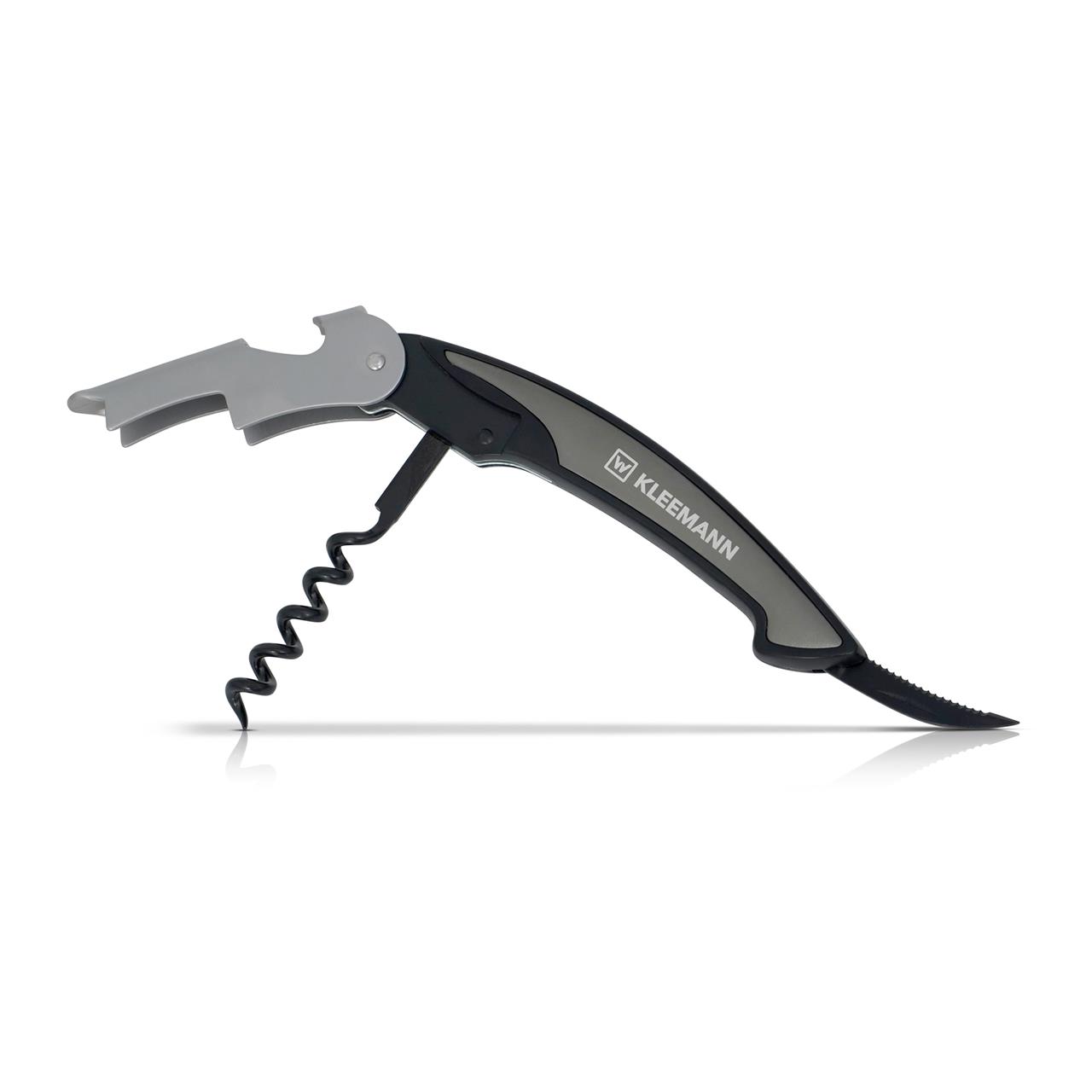 Weinflaschen mit Korken öffnen wie ein Profi! Das hochwertige Sommelier-Messer mit KLEEMANN-Logo aus Aluminium und Edelstahl verfügt über Kapselheber, Messer (Folienschneider), Spindel (Korkenzieher) und Hebel. Die Spindel ist aus Edelstahl gefertigt, so dass er sich für synthetische und natürliche Korken eignet.