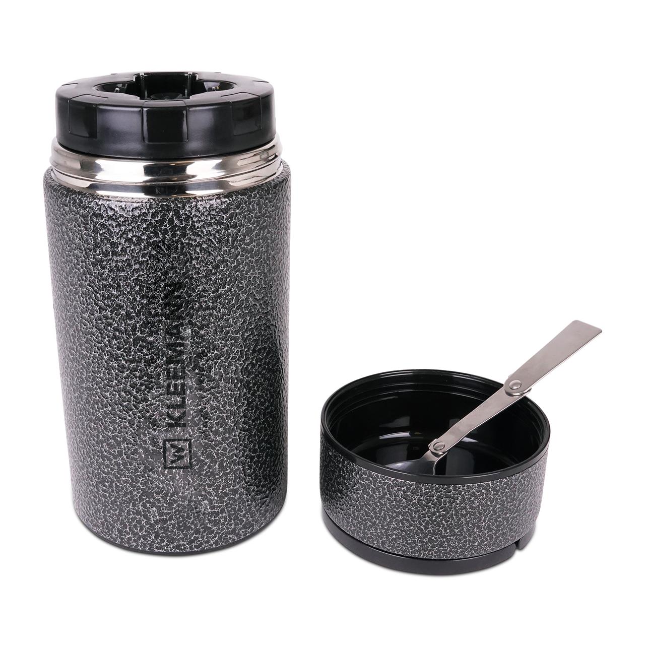 Selbst zubereitetes Essen spart nicht nur To Go Müll, sondern ist meist auch ausgewogener und günstiger. TROIKA Henkelmann ist perfekt für die Mittagspause, Wanderung oder Picknick. Dank 900 ml Fassungsvermögen, Doppelwandisolierung und Auslaufsicherheit sind Getränke und Speisen sicher untergebracht. Für Getränke, warme Speisen, Salate und Suppen, lebensmittelecht (LFGB geprüft) bestens geeignet und dank der coolen Hammerschlagoptik, die durch den Druck des KLEEMANN Logos in schwarz getoppt wird, ein echter Hingucker. Breite Öffnung zur besseren Befüllung, Entnahme und Reinigung, Inhalt bleibt für bis zu 8 Stunden warm.