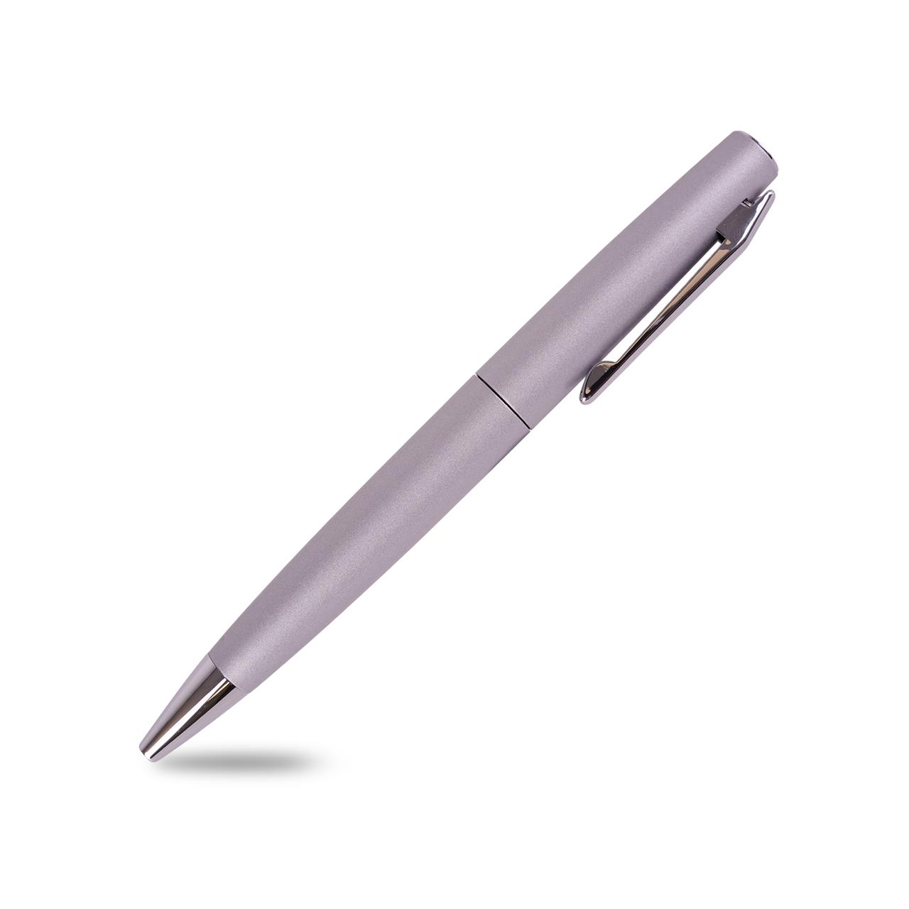 Eleganter Metall-Drehkugelschreiber in silber mit blau schreibender Metall- Großraummine. Die... mehr